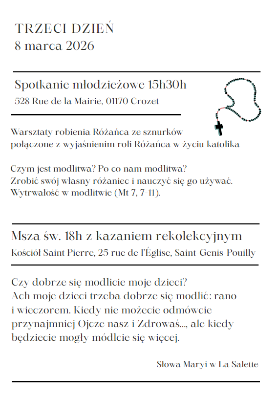- Serdecznie zapraszamy na rekolekcje wielkopostne, których program poniżej:
